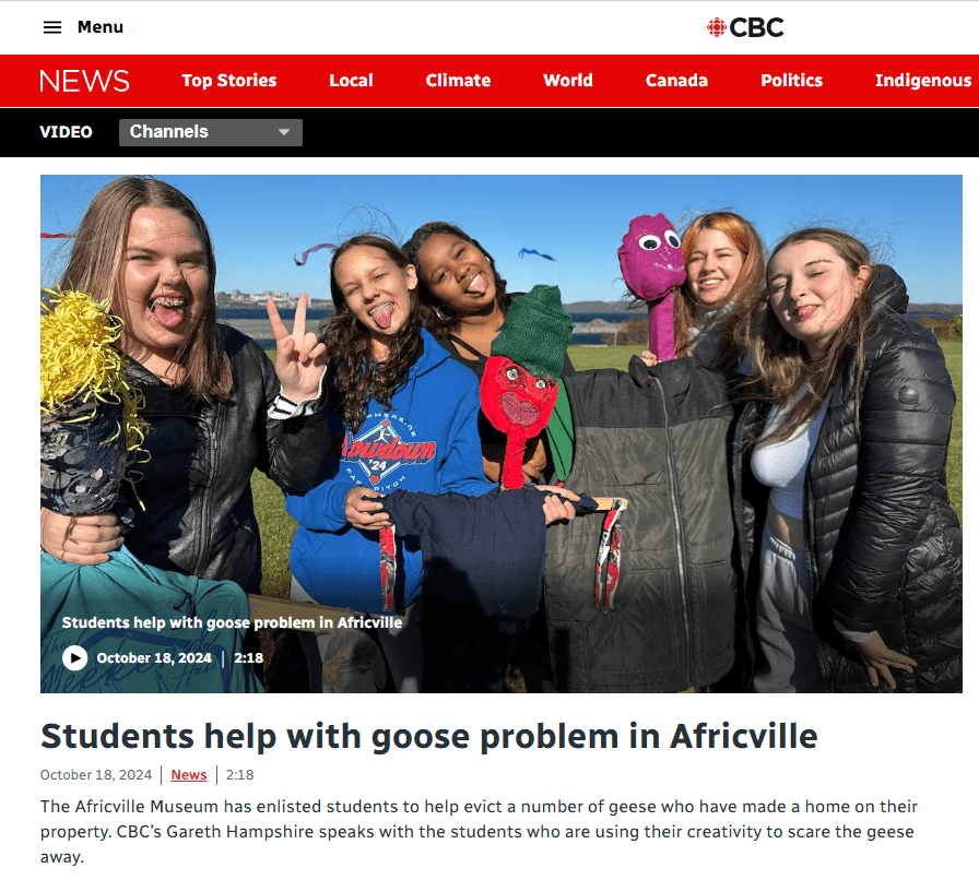 The Africville Museum has enlisted students to help evict a number of geese who have made a home on their property. CBC’s Gareth Hampshire speaks with the students who are using their creativity to scare the geese away.